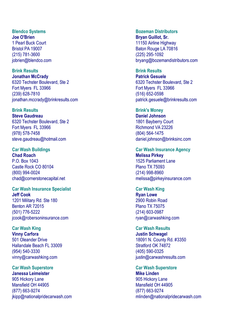 Scwa Vendor Member Listing Southwest Car Wash Association