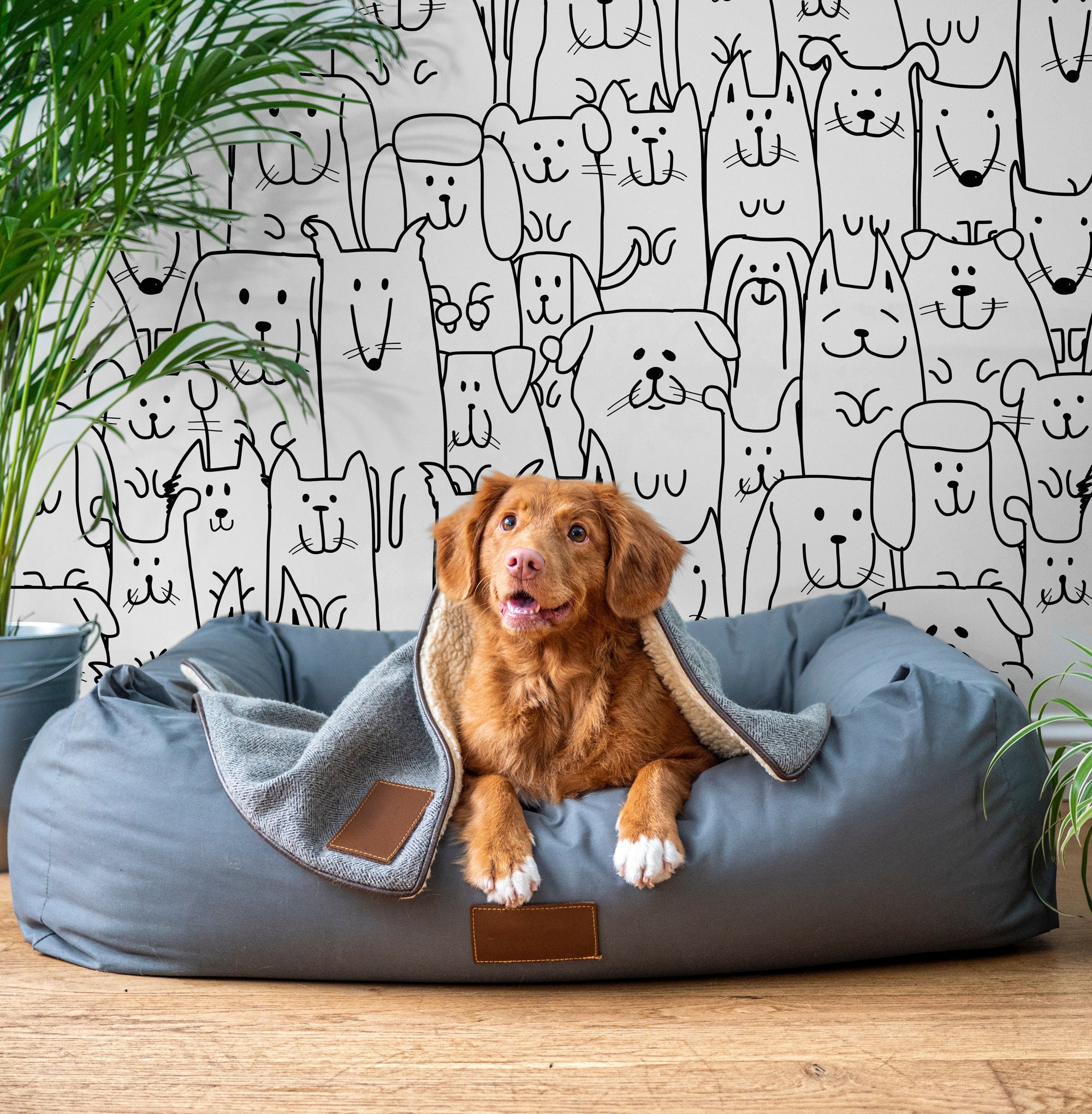 Kids Wallpaper Peel And Stick Cute Drawing Dogs Wallpaper Dog Etsy Israel