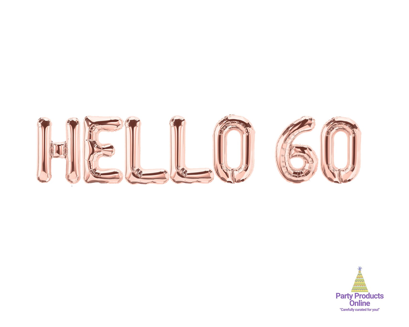 Hello 60 Letter Balloon Banner Gold Rose Gold Silver Etsy De